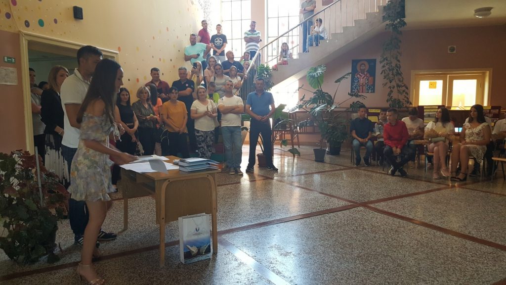 Подела сведочанстава Posted on 13. јун 2021. Подела књижица за ученике млађих разреда и сведочанстава за ученике петог,шестог и седмог разреда реализована је у понедељак 28.6.2021.године.Време поделе истих било је у складу са договором одељењских старешина и ученика и обављено је у преподневним часовима. За ученике осмог разреда организована је свечана додела сведочанстава у послеподневним часовима у холу школе уз присуство родитеља,наставника и осталих запослених у школи. Мира Никачевић